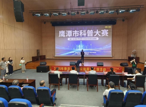 近日由鹰潭市科技局、鹰潭市科协、鹰潭市教育局主办的2025年鹰潭市科普大赛在鹰潭市科技馆成功举办。大赛以“提升全民科学素质 夯实科技强国基础”为主题,旨在搭建高水平科普交流平台,选拔优秀科普人才与作品,进一步推动全市科普事业与科技创新、产业发展深度融合,助力高质量发展。本次赛事涵盖科学实验展演汇演活动和科普讲解大赛的现场比拼及科普微视频征集活动评选三个环节,吸引了来自全市30多个代表队同台竞技,充分展现了鹰潭市科普工作的蓬勃生机与创新活力。