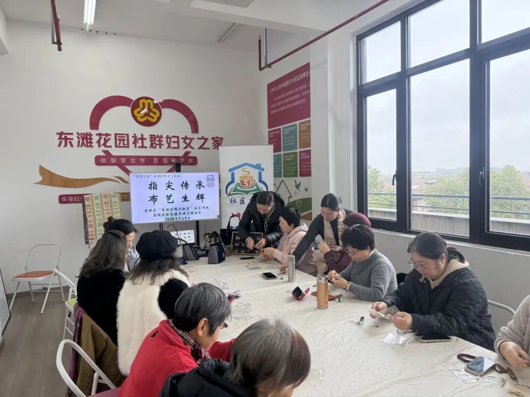 为深入传承中华优秀传统文化,丰富社区居民精神文化生活,提升社区科普服务效能,崇明区陈家镇东滩花园社区依托崇明区“东滩创想实验营”社区书院科普平台,组织开展了非遗土布胸针手工制作科普活动。