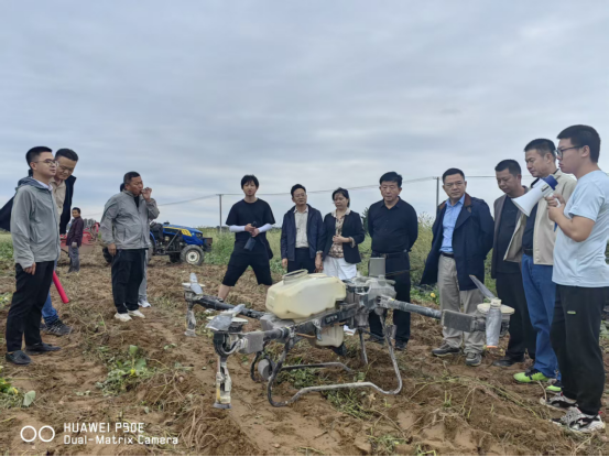 红安县科协以首个 “全国科普月” 为契机,联合县农业农村局、黄冈市红薯产业行业协会专业力量,到高桥镇陈家大湾红薯种植基地田间地头现场授课,并开展科技志愿服务活动,为红薯产业发展注入科技动能。高桥镇陈家大湾村苕韵农业种植基地占地面积1000余亩,亩产5500余斤,是该县红苕种植滴灌、覆膜、水肥一体化技术应用及推广示范基地,带动附近村民100余人就业创收。在活动现场,志愿服务组不仅现场讲解水肥一体化、控丰控旺等田间管理技术,更实地演示了智慧农业装备的应用成效,大疆T60无人机可实现施肥打药一体化作业,每小时防治面积达五十亩,昼夜无阻、风雨不误;机械化采收设备高效精准,极大缓解劳动力短缺难题。