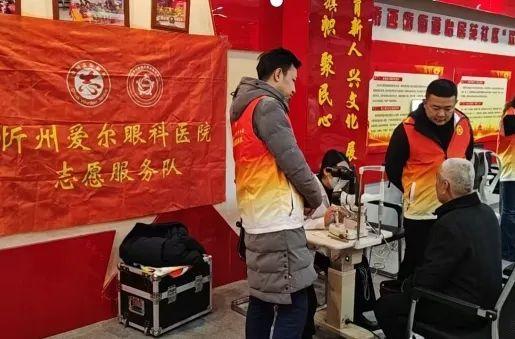 ▲忻州市爱尔眼科眼视光科普教育基地志愿者为社区居民义诊