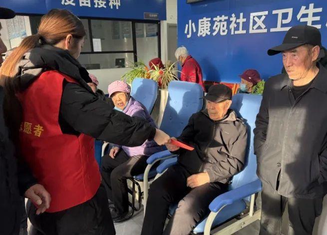 ▲静乐县科协组织志愿者为社区居民发放科普宣传资料