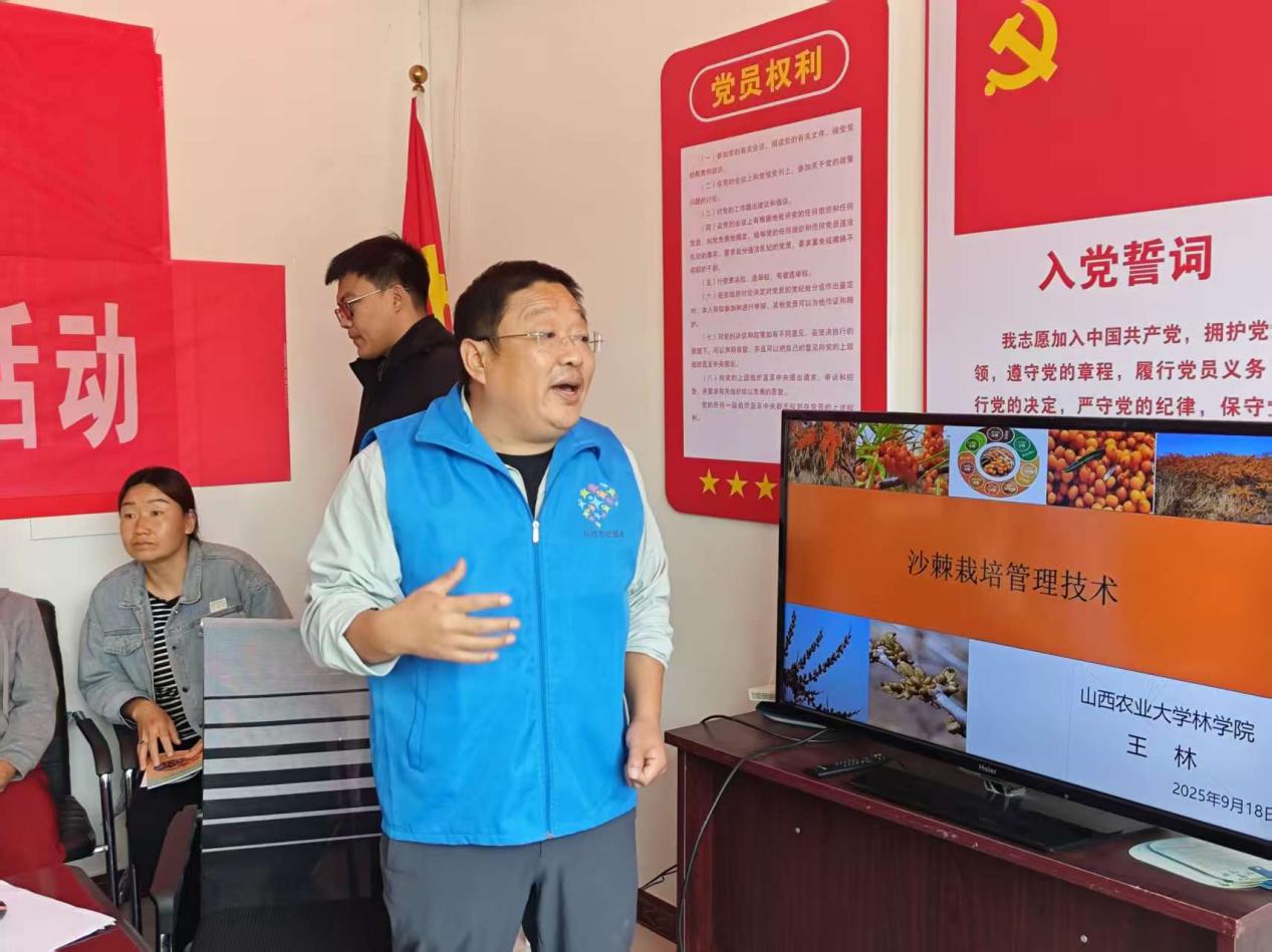 本次培训聚焦当地沙棘产业发展实际需求,山西岚县沙棘小院专家、山西农业大学林学院副教授,硕士生导师王林就育苗技术、栽培管理技术以及低产沙棘林改造进行了细致入微的授课,通过大量生动鲜活的实际案例分析,将抽象的理论转化为接地气的实践指导,帮助学员更好地将知识与实际应用结合。