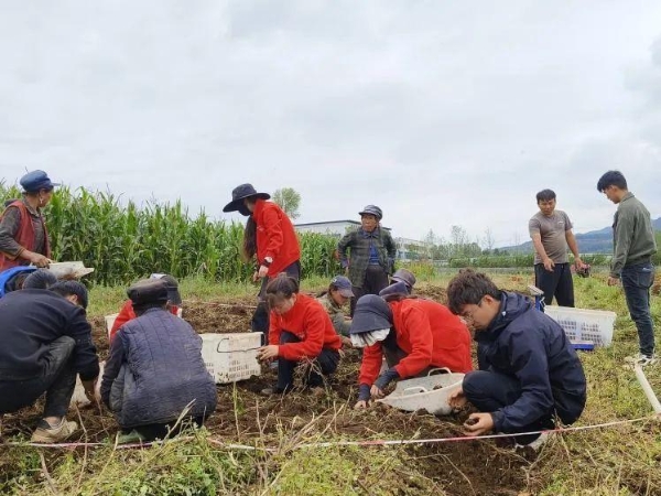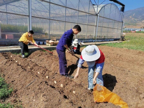 试验播种从播种开始到晚疫病防治期、收获期……科技小院团队在生产的关键时段每天守在地里,有时连饭都搬到田里来吃。引种到布拖县的“川凉薯10号”等土豆品种,平均亩产达到了6000多斤。丰收后,科技小院的名字很快就在大凉山区传开了。