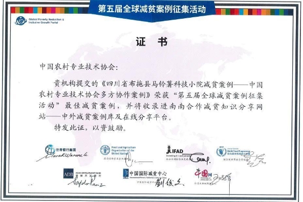 近日,《四川省布拖县马铃薯科技小院减贫案例——中国农村专业技术协会多方协作案例》荣获“第五届全球减贫案例征集活动”最佳减贫案例。