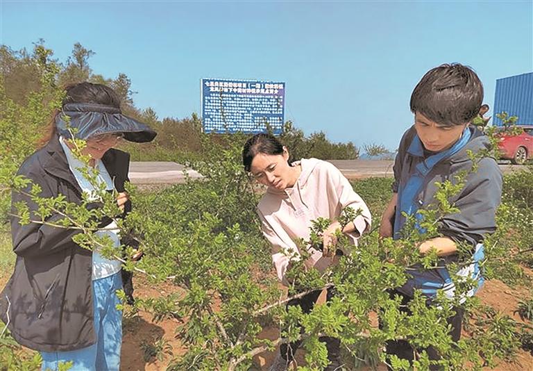 贵州七星关刺梨科技小院首席专家、贵州大学教授鲁敏(中)讲解刺梨管护知识。