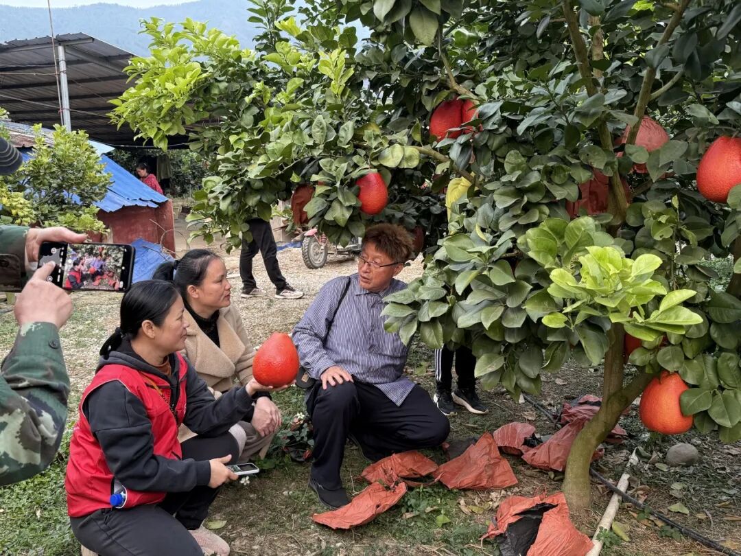 期间,薛进军一行还考察了乡村科技特派员黄红片服务的红柚基地,结合基地实际生产情况“把脉开方”。据悉,该基地种植的红柚品种经套袋处理后,果皮色泽鲜红、品相优良,5年生果树单株产值可达1500~2000元,亩产值达6.6万~8.8万元,经济效益可观。针对当前红柚花芽分化期且以长果枝结果为主的特点,薛进军指导采用营养袋吊枝下垂技术,促进花芽分化。基地负责人表示,将在60亩红柚园完成采收后,立即落实该技术措施。