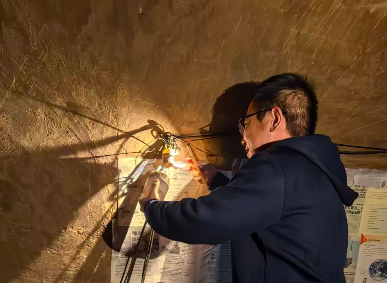 驻村工作队队员为老乡解决实际问题,图为工作队员给老乡安装照明灯。