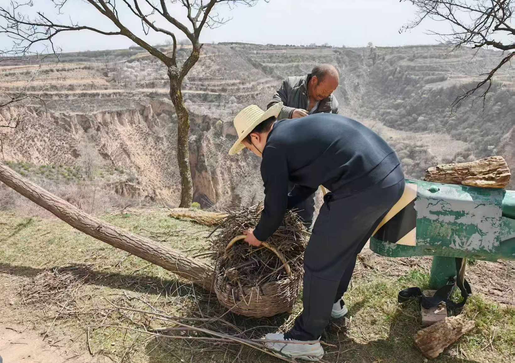 驻村工作队队员成员帮群众收拾柴火。